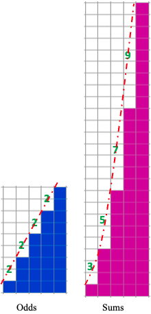 In grades 8-10, the growth of odd, even, and natural numbers, compared to the growth of their sums, introduces students to linear and non-linear relationships.